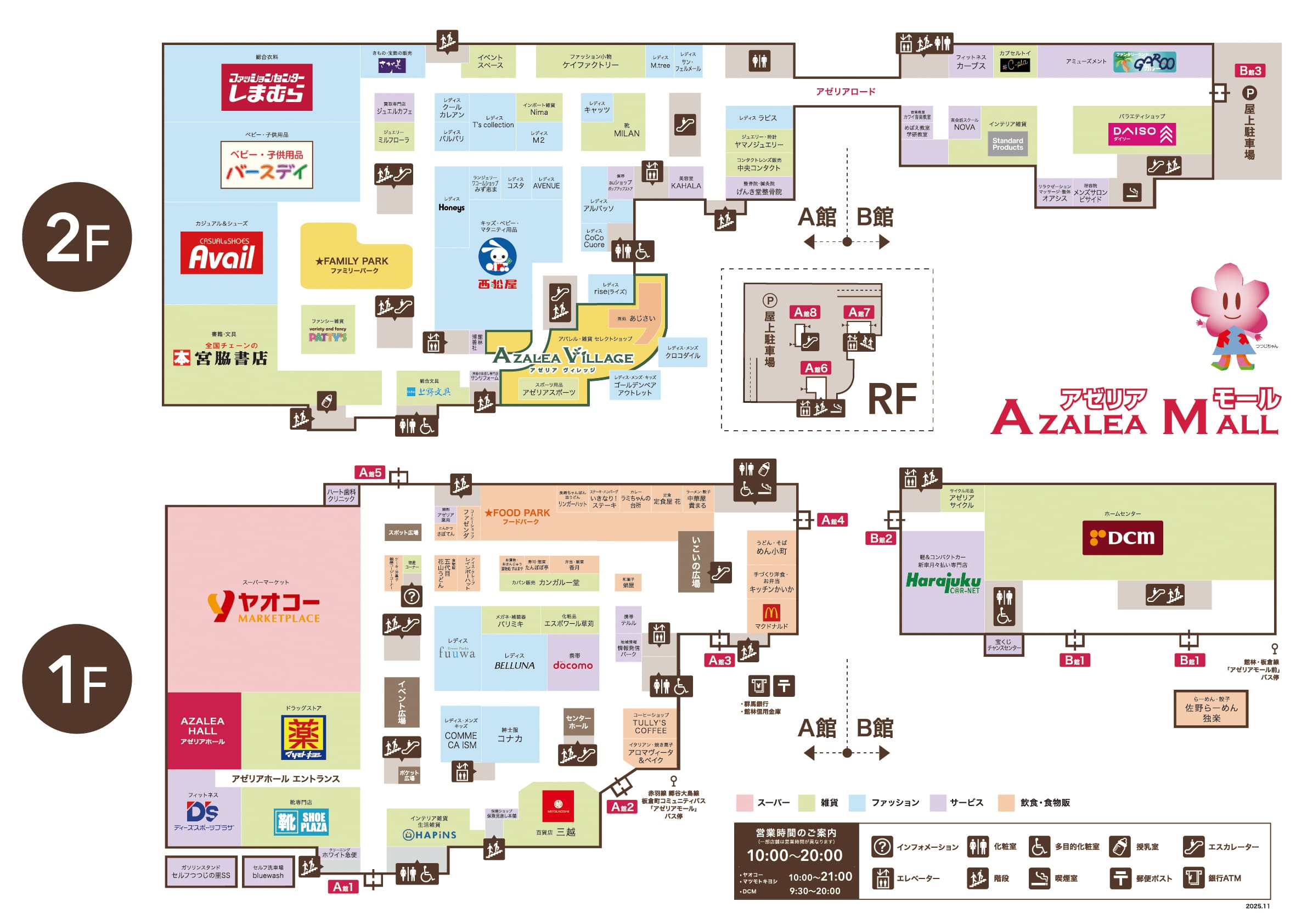 | A館1F | <ヤオコー・マツモトキヨシ> 10:00~21:00 <上記2店舗以外> 10:00~20:00 |