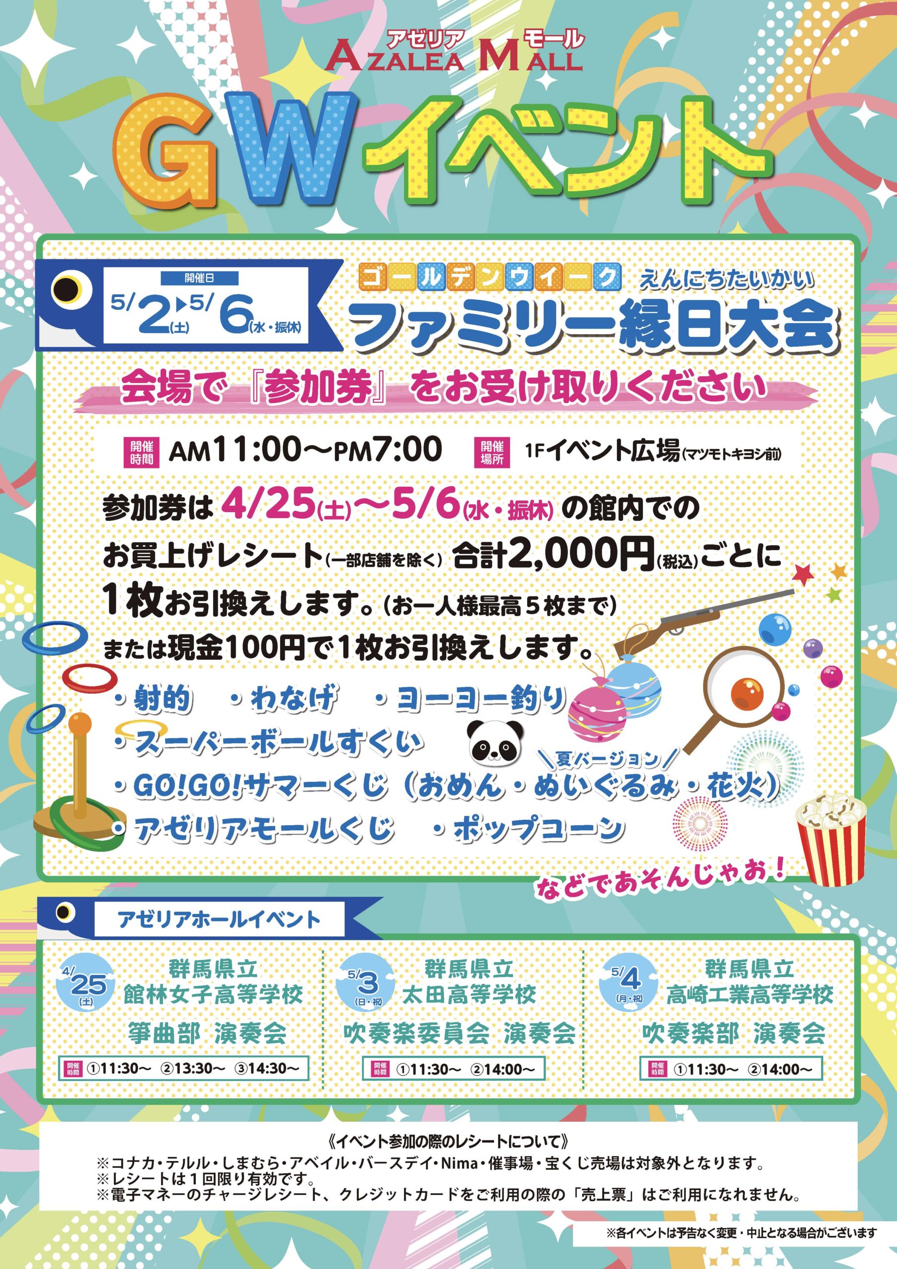 4/25(土)~5/6(水・振休)のアゼリアモール各店でのお買上げレシート