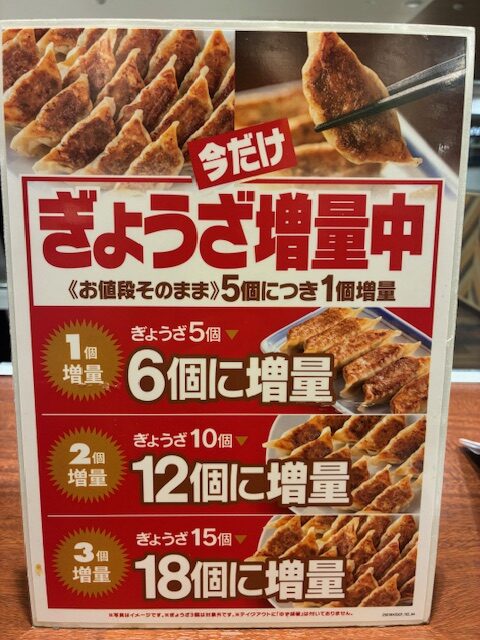 ぎょうざ増量キャンペーン実施中!