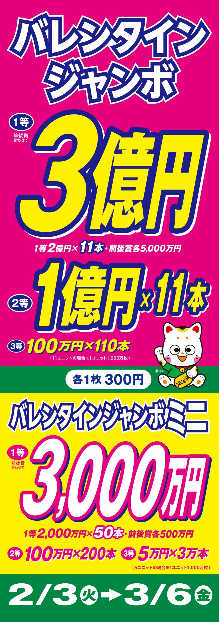 1等前後賞合わせて3億円のビッグチャンス!